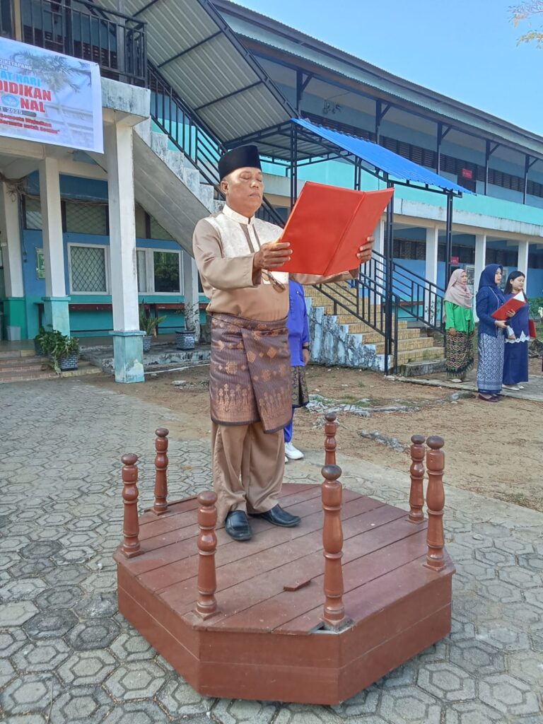 Sebagai pembina upacara, Bapak Tajudin, S.Ag, selaku Kepala Sekolah, menyampaikan amanat yang menggugah semangat seluruh peserta upacara. Dalam pidatonya, beliau mengangkat tema nasional Hardiknas tahun ini: